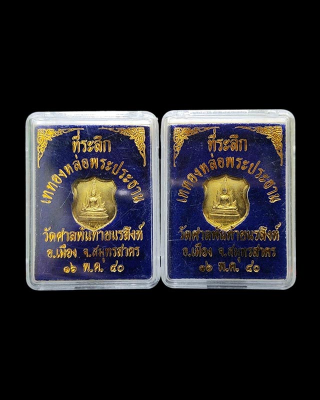 เหรียญโล่ห์สมเด็จองค์ปฐม ที่ระลึกเททองหล่อพระประธาน วัดพันท้ายนรสิงห์ เนื้อฝาบาตร ปี 2540 จำนวน 2 องค์