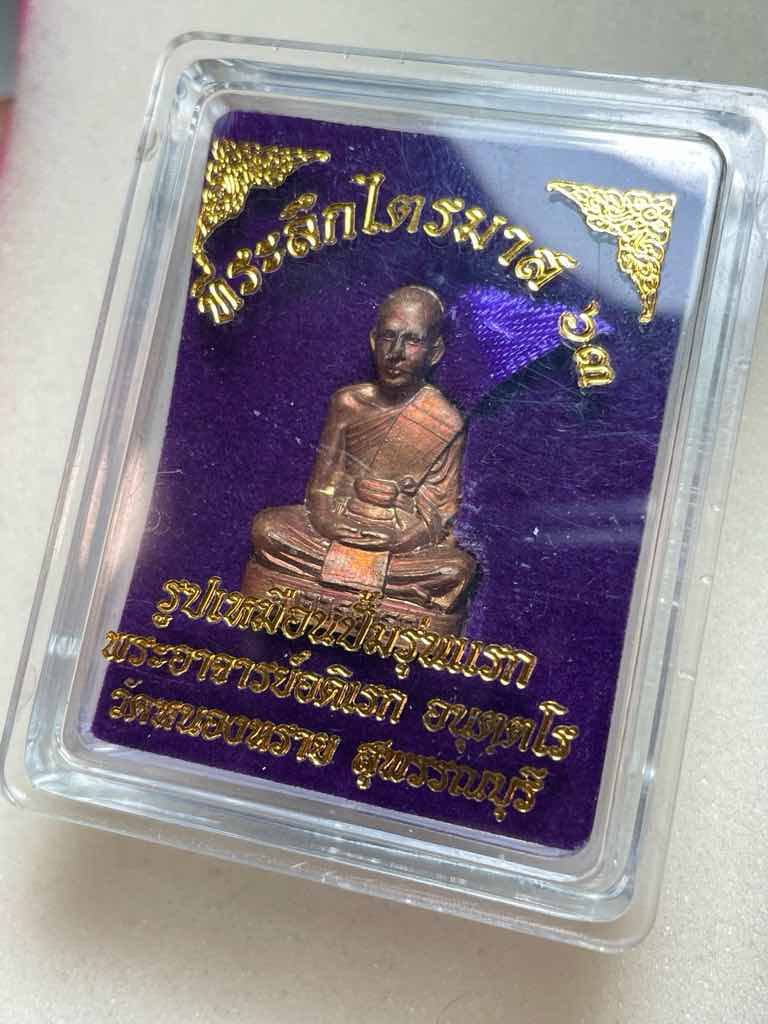 รูปเหมือนปั๊ม รุ่นแรก ปี 2563 พร ะอาจารย์อดิเรก วัดหนองทราย จ.สุพรรณบุรี เนื้อทองแดงผิวรุ้ง อุดกริ่ง ผิวเดิมๆ สวยเดิม มาพร้อมกล่องเดิม