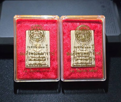 ชุดสุดท้าย . 2 องค์ . สภาพสวย . มี 2 ตรายาง . เศียรกลมโต . เท่าไหร่เท่านั้น ... พระสมเด็จวัดระฆัง รุ่นอนุสรณ์ 122 ปี พ.ศ. 2537 พิมพ์ใหญ่ เนื้อจัด เศียรกลมโต มี 2 ตรายาง + กล่องเดิม |