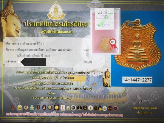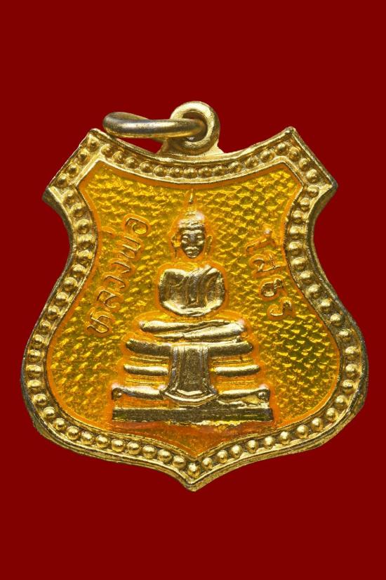 เหรียญอาร์มลงยาเหลือง หลวงพ่อโสธร ที่ระลึกสร้างอุโบสถ ปี 2536 สภาพสวย องค์แชมป พร้อมใบประกาศ