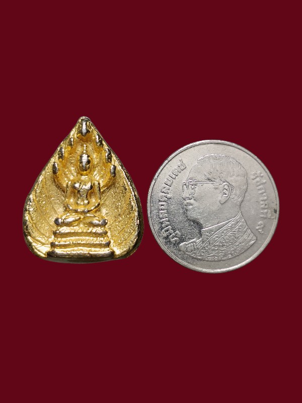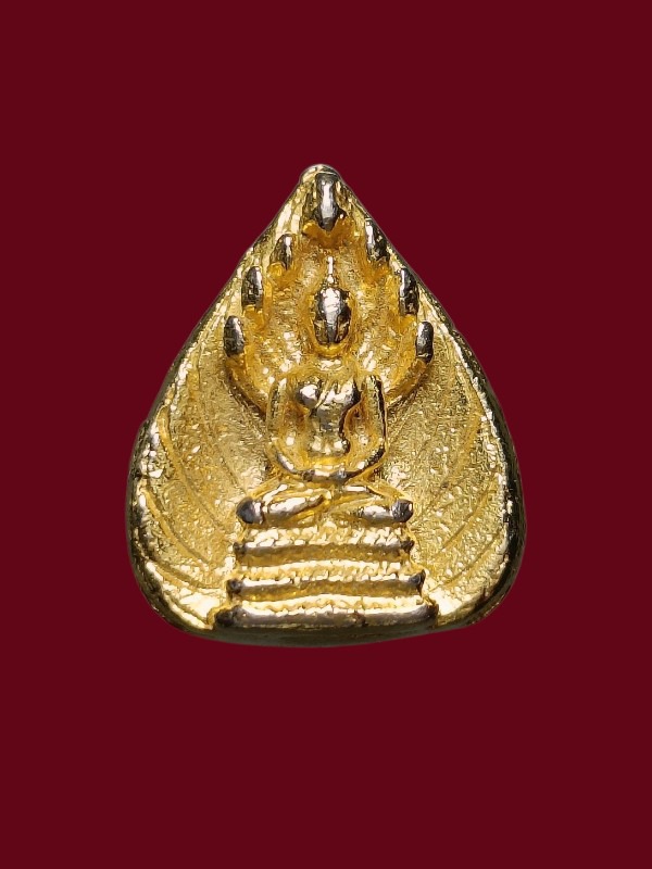 พระนาคปรกหลังใบโพธิ์ (รุ่นที่ 45) พระอาจารย์ฝั้น อาจาโร วัดป่าอุดมสมพร (คณะศิษย์จัดสร้างในวาระฉลองศาลาการเปรียญวัดป่าโนนแสงทอง) ปี 2517 กะไหล่ทอง |