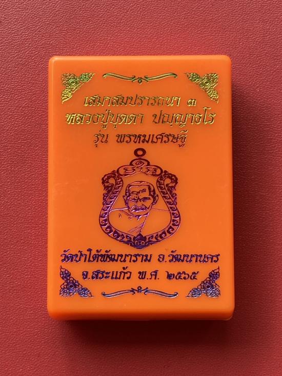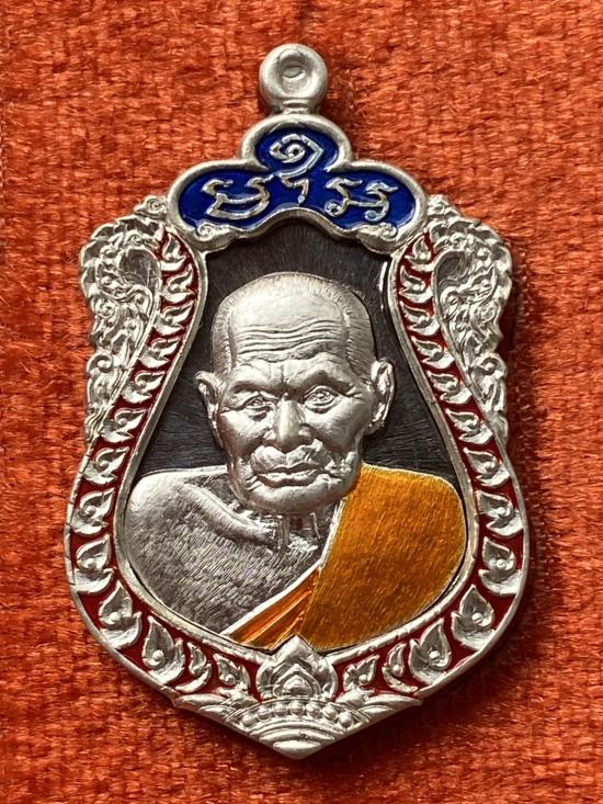 เคาะเดียวแดง หลวงปู่บุดดา รุ่น พรหมเศรษฐี เนื้อ นวะขอบเงิน หน้ากากเงินลงยา