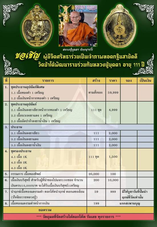 เคาะเดียวแดง หลวงปู่บุดดา รุ่น กฐิน64 เนื้อ ทองแดงรมดำหน้ากากเงิน แจกสะพานบุญ |
