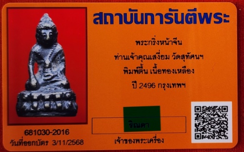 พระกริ่งหน้าจีน เจ้าคุณเสงี่ยม วัดสุทัศน์ฯ พ.ศ. ๒๔๙๖