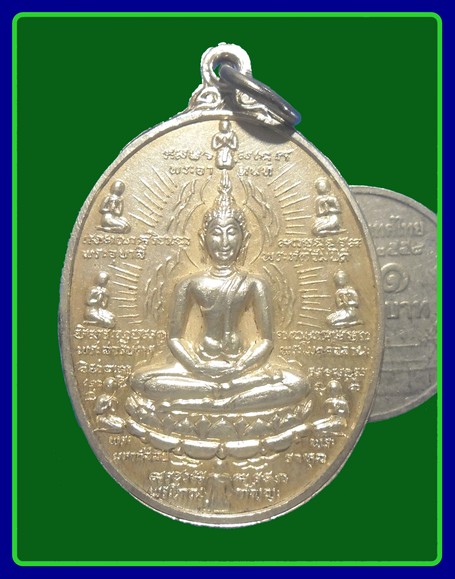 250 เหรียญหลวงพ่อแพ เขมังกโร วัดพิกุลทอง จ.สิงห์บุรี หลังพระอรหันต์ 8 ทิศ พศ.2519เนื้อทองแดงชุบนิเกิ้ลกะไหล่ทอง |