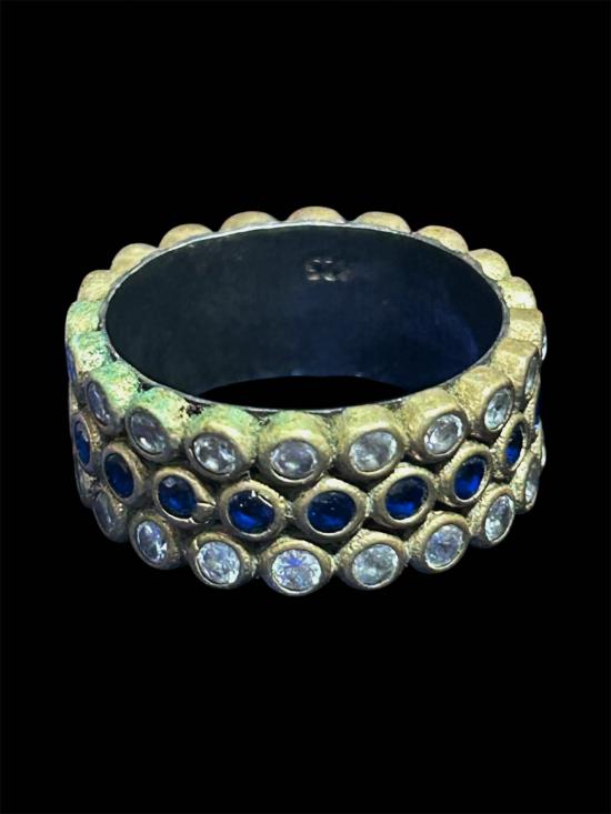 วัดใจ..100 แหวนทองเหลือง ฝังพลอย ปอกในเงิน ตอก 925 size 52 |
