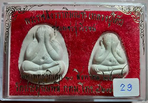 29,เคาะเดียวแดงสบายใจครับ พระปิดตาวัดประดู่ฉิมพลี รุ่นเพชรรุ่งโรจน์ พิมพ์จัมโบ้หลังยันต์นะ ฝังตะกรุดทอง 2 ดอก และ พิมพ์หลังยันต์นะ ตะกรุดเงิน 2 ดอก ปี 2535 ผสมผงเก่าหลวงปู่โต๊ะน่าบูชาครับ |