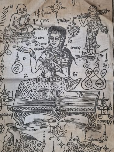 ผ้ายันต์นางกวักเก่า ไม่ทราบที่ไม่ทราบปี **สภาพเก่ามีคราบเหลือง พิจารณาตามภาพประกอบ