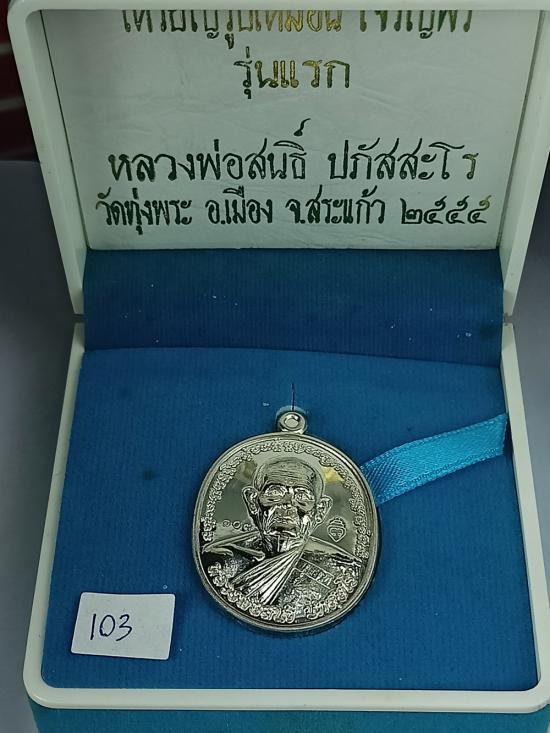 เหรียญรูปเหมือน "เจริญพร รุ่นแรก" หลวงพ่อสนธิ์ วัดทุ่งพระ ปี 55 เนื้อเงิน เบอร์ 103 พร้อมกล่องเดิมครับ (เหรียญหนัก 14.60 กรัม) |