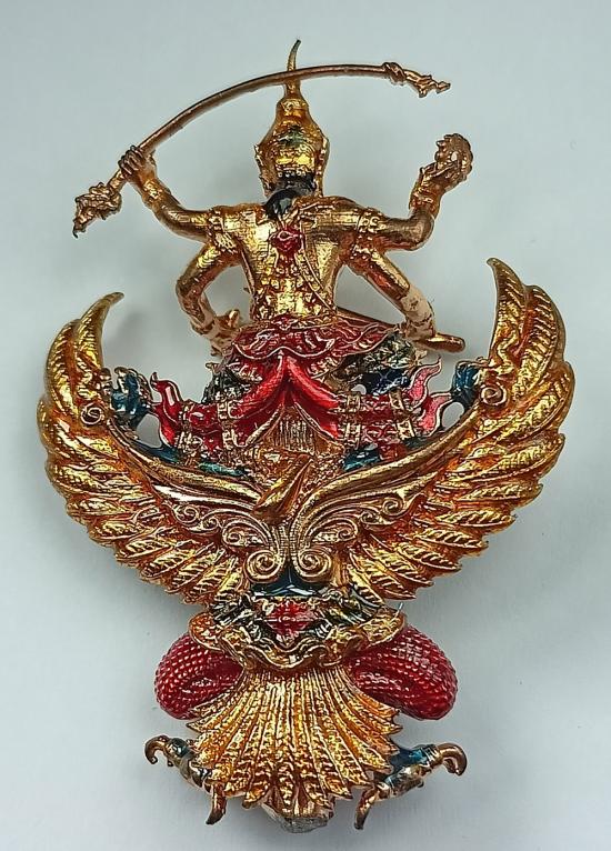 พระนารายณ์ทรงครุฑราชปักษา รุ่น ดวงมหาเศรษฐี หลวงปู่ดวงเศรษฐี วัดหนองไผ่ เนื้อเบญจโลหะลงยา (สูง 4.7 ซม.) "แยกชุดของขวัญ มูลค่า800บาท" เบอร์ 396 พร้อมกล่องเดิมครับ
