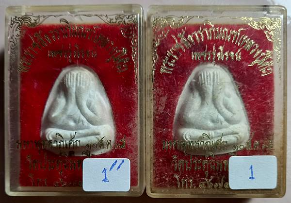 1,เคาะเดียวแดงสบายใจครับ พระปิดตาวัดประดู่ฉิมพลี รุ่นเพชรรุ่งโรจน์ พิมพ์ปลดหนี้หลังยันต์นะ ฝังตะกรุดเงิน 2 ดอก และ พิมพ์ปลดหนี้หลังยันต์นะ ไม่มีตะกรุด ปี 2535 ผสมผงเก่าหลวงปู่โต๊ะน่าบูชาครับ |