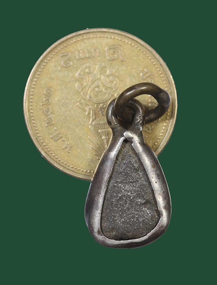 วัดใจ**เครื่องราง เนื้อปรอท เลี่ยมกรอบเงิน+ห่วงเชื่อมเก่า ไม่ทราบที่.....ตามสภาพครับ |