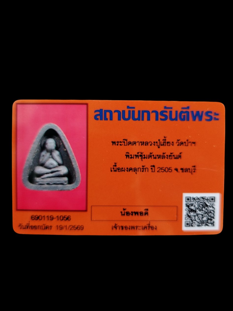 พระปิดตาซุ้มตัน หลังยันต์หลวงพ่อเฮี้ยง มาพร้อมบัตรรับรอง