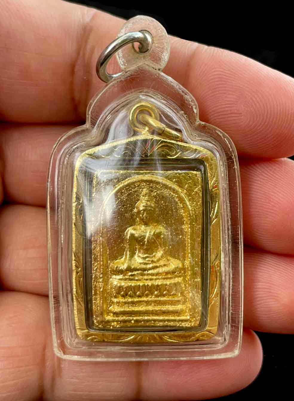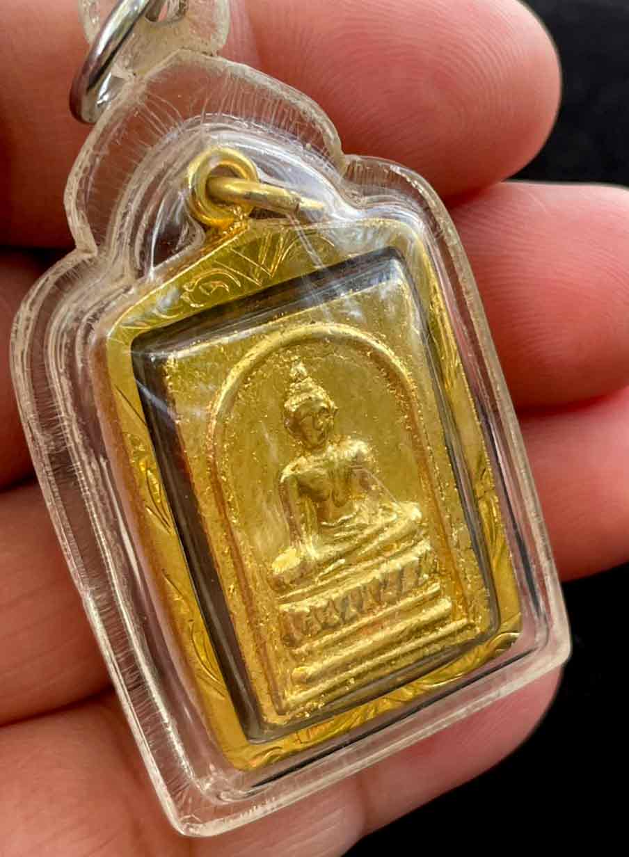 วัดใจ พระผง หลวงพ่อปู่ วัดโกรกกราก จ.สมุทรสาคร รุ่นไม้สักพระอุโบสถ ปี 2540 เลียมพลาสติก เก็บผิวทองไมคอนเดิม