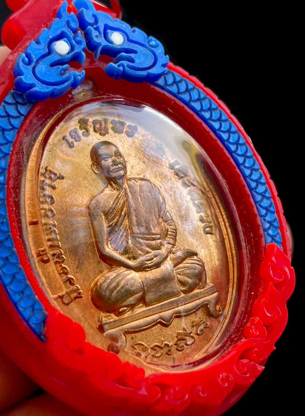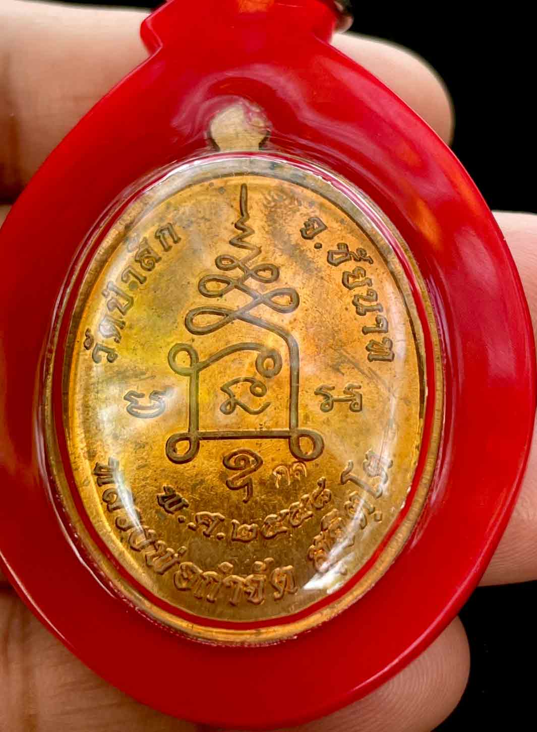 วัดใจ เหรียญเจริญพร หลวงพ่อกำจัด วัดป่าสัก จ.ชัยนาท เนื้อทองแดง ปี 2558 เลี่ยมสวยงาม