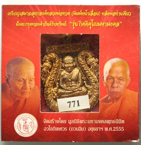 "วัดใจ" เหรียญเสมาฉลุยกองค์หลวงพ่อทวด(พิมพ์หน้าเลื่อน)หลังพ่อท่านเขียว ฝังตะกรุดทองคำยันต์รับทรัพย์ "รุ่น กิตติคุโณมหามงคล" เนื้อ บรอนซ์นอก มวลสารเหรียญ เลื่อน ปี 08 วัด ช้างให้ใส่ลงไปพร้อมกล่องเดิม หมายเลข 771