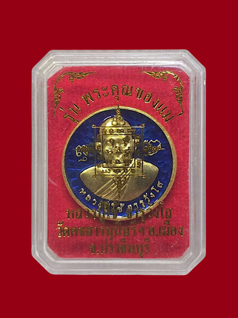 ***เหรียญพระคุณของแม่ เนื้อทองแดงชุบทองลงยาสีน้ำเงิน (ขนาดเท่าเหรียญ 2 บาท) หลวงปู่ใช้ จารุวังโส) วัดคชสารมุนีษร๊ ฯ จ.ปราจีนบุรี สร้าง 199 เหรียญ***