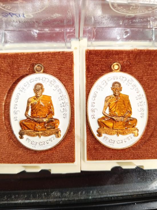 เหรียญไตรมาส ปี 61 หลวงปู่สิน วัดละหารใหญ่ จ.ระยอง เนื้อทองแดงลงยาขาว หมายเลข 3641 กับ 1453 กล่องเดิม รับพระ 2 องค์