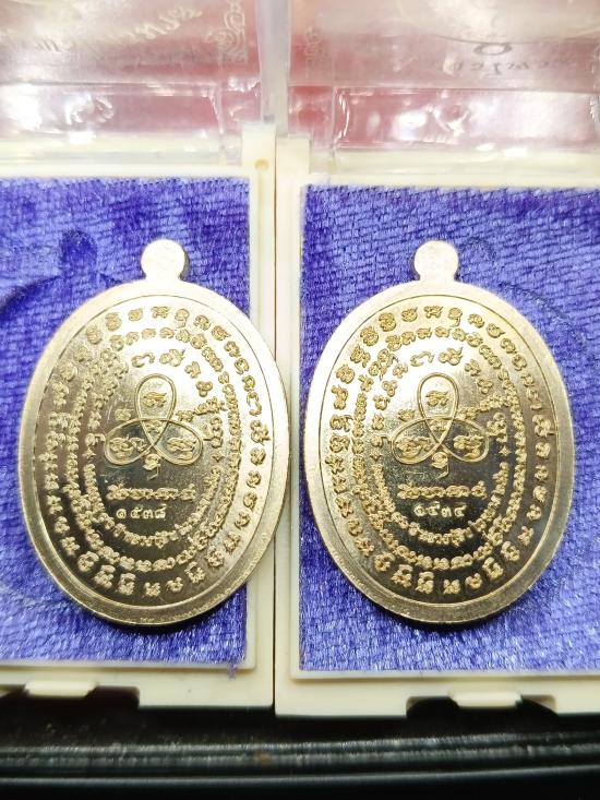 เหรียญไตรมาส ปี 61 หลวงปู่สิน วัดละหารใหญ่ จ.ระยอง เนื้ออัลปาก้าหน้ากากทองทิพย์ผิวรุ้ง หมายเลข 1358 กับ 1434 กล่องเดิม รับพระ 2 องค์