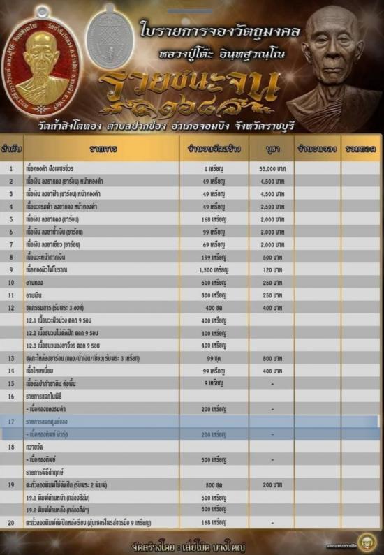 เหรียญ รุ่น"รวยชนะจน ๑๖๘" หลวงปู่โต๊ะ อินทสุวัณโณ วัดถ้าสิงโตทอง ราชบุรี รายการแจกศูนย์จอง(รก.17) เนื้อทองทิพย์ผิวรุ้ง เหรียญสวยมากครับ องค์นี้รับไปแบบไม่แกะซีล เอาไป"ลุ้น"หมายเลขเอานะครับ) เปิดให้
