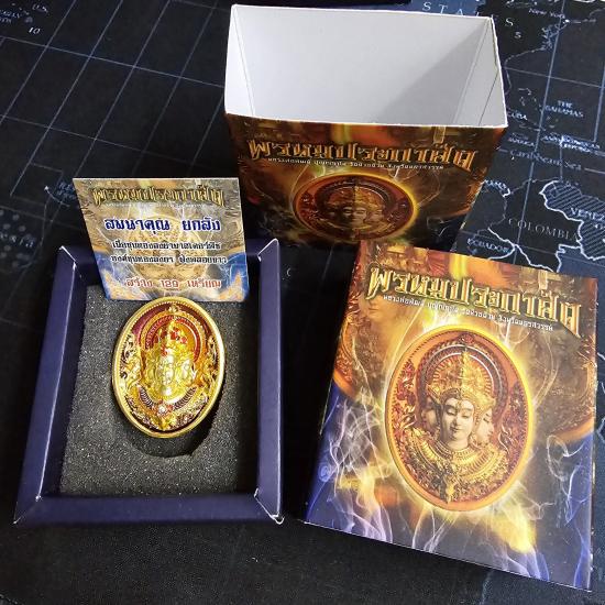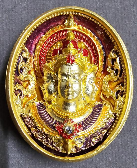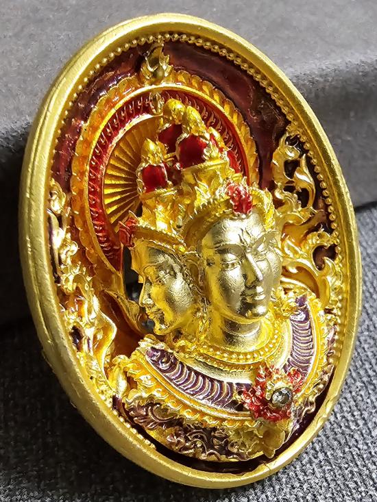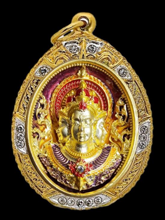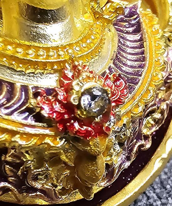 เนื้อชุบทองลงยามาสเตอร์พีชหน้า-หลัง องค์ชุบทองลงยา ฝังพลอยขาว เรืองแสง