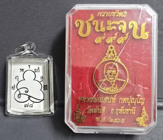 หลวงพ่อเสน่ห์ กตปุญโญ วัดพันสี อุทัยธานี (สร้างปี ๒๕๖๕) เหรียญ"ชนะจน๙๙๙"(ควายขวิด2)กล่องแดงซีลเดิม + รูปถ่าย หลังยันต์ เลี่ยมกันน้ำ เบาๆเคาะแรกแดง รับพระ 2 องค์ครับ |