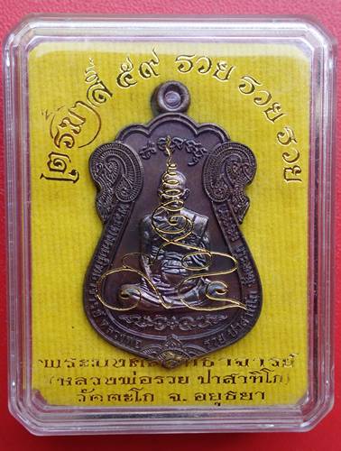 เหรียญไตรมาส ๕๙ รวย รวย รวย หลวงพ่อรวย วัดตะโก อยุธยา ปี 2559 เนื้อทองแดง