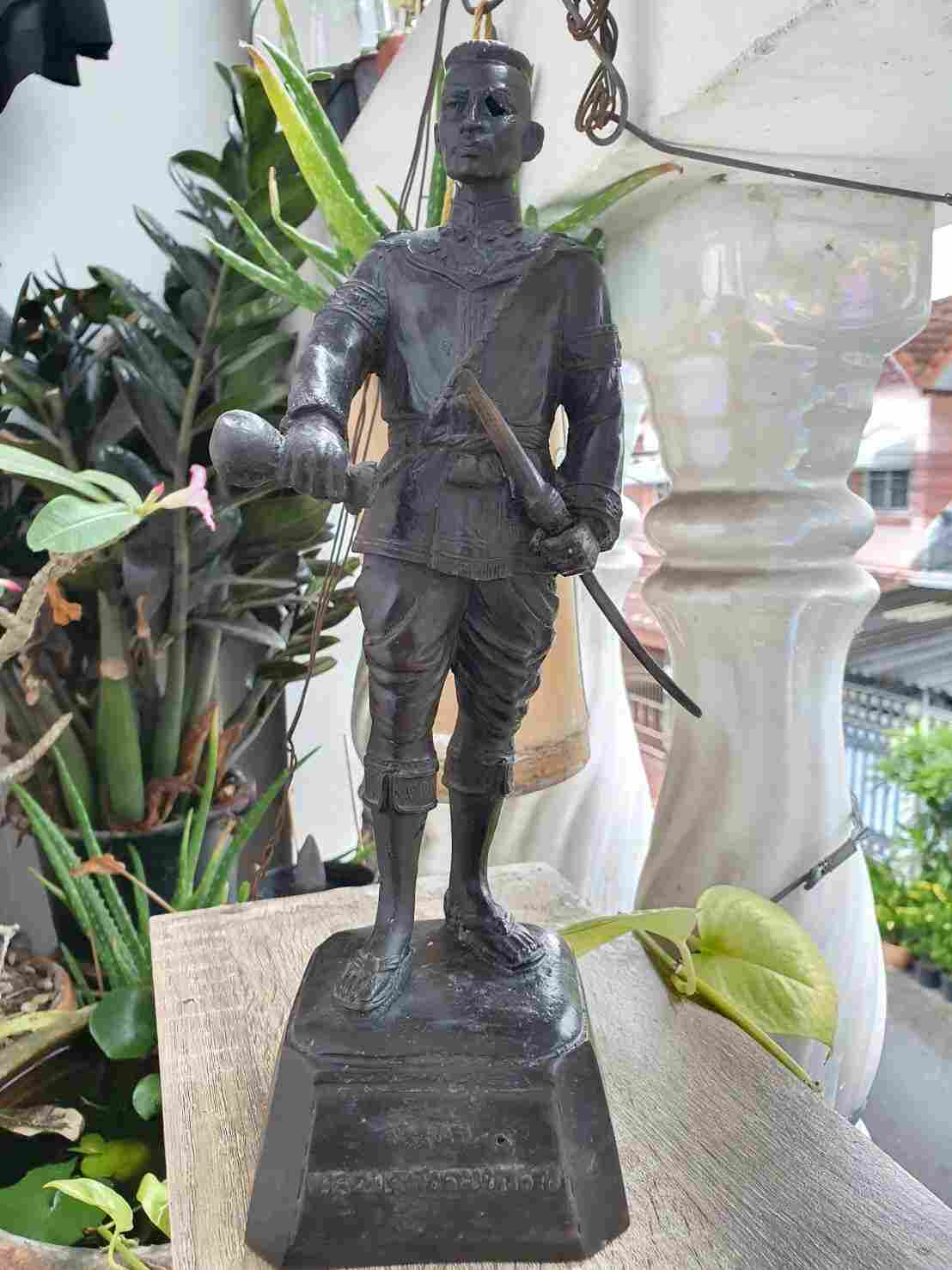 รูปหล่อสมเด็จพระนเรศวรไม่ทราบที่#เบ้าตาซ้ายหล่อไม่เต็มฐาน 4 นิ้วสูงประมาณ 12 นิ้ว |