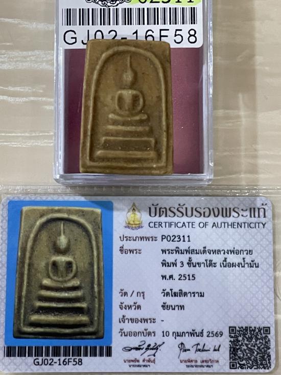 (เคาะแดง4500) +บัตรสมาคม สมเด็จ3ชั้นขาโต๊ะ หลวงพ่อกวย เนื้อผงน้ำมัน