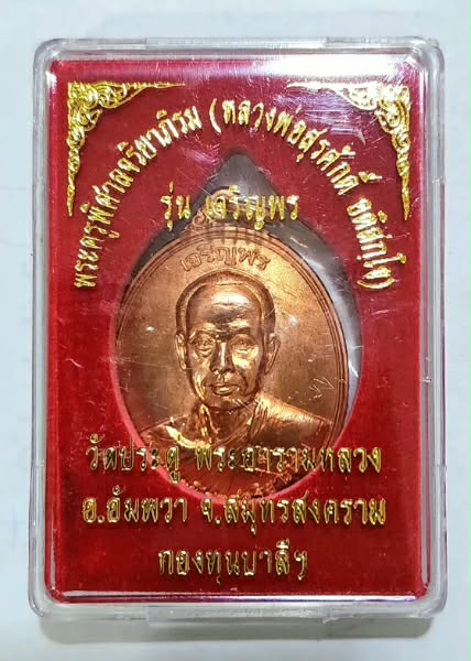 พระสวย.. เหรียญเจริญพร "ครึ่งองค์" พระมหาสุรศักดิ์ วัดประดู่พระอารามหลวง เนื้อทองแดง หมายเลข 9612 พร้อมกล่องเดิม