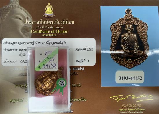 หลวงพ่อรวย วัดตะโก จ.อยุธยา เสมา รวยมหาเศรษฐี ปี 2557 เนื้อทองแดงผิวไฟ ตอกโค๊ดเลข 332 พร้อมรางวัลที่ 3 งานประกวด