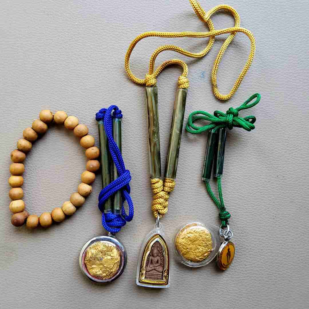 วัดใจ เคาะเดียว 140 6เส้น ประคำ คอไม้เก่าเส้นยาว 2เส้นสร้อยพร้อมตะกรุด และประคำมือไม้เก่า