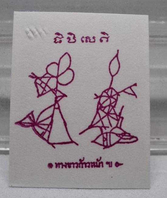 ภาพถ่ายคุณแม่บุญเรือน โตงบุญเติม ล้างอัดด้วยวิธีการห้องมืด (ไม่อัดกระจก) ความคมชัดของรูปสมบรณ์สวยงามถึงขีดสุด ตอกโค้ดพุทโธทุกใบ ด้านหลังปั๊มตรายาง เป็นรอยเท้าคุณแม่ และเขียนว่า ทางขาวก้าวหน้า ด้านบนลงหัวใจปฏิสังขาโย (จิปิเสคิ)