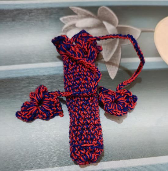 ซองใส่ตะกรุด ขนาดความยาว 7 ซ.ม เส้นผ่าศูนย์กลาง 1.5 ซ.ม ทำจากด้ายถักวีนัส งานถัก งานฝีมือครับ สีแดงน้ำเงิน (เคาะเดียว)