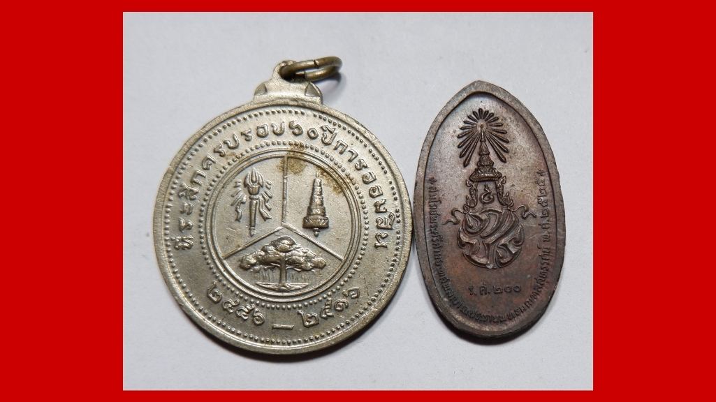 เหรียญ ร.6 ที่ระลึกครบรอบ 60 ปี ธนาคารออมสิน พ.ศ. 2516 เนื้ออัลปาก้า+ เหรียญสมโภชพระศรีศากยะทศพลญาณ ร.ศ. 200 พ.ศ. 2525 |