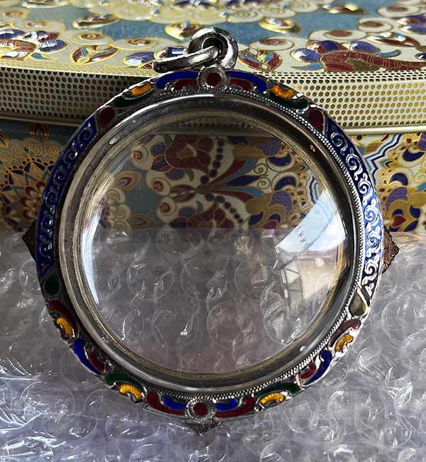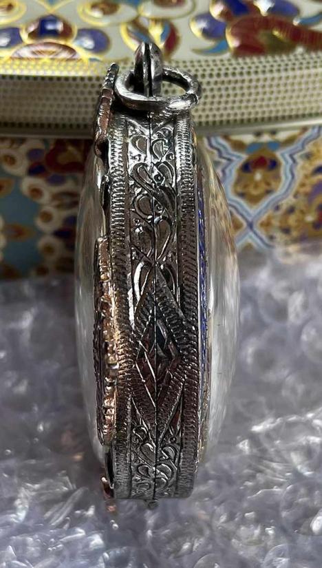 ชื่อพระเครื่อง ตลับเงินแท้มือสอง (งานสั่งทำ ) เงินลงยายกซุ้มราหู ( ราหูชุบนาค ) น้ำหนัก 35.7 กรัม สวยครับ