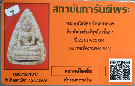 พระพุทโธน้อย รุ่น2 พิมพ์หลังยันต์พุทโธ ปี 2516 วัดสารนาถธรรมาราม จ.ระยอง เคาะเดียว |