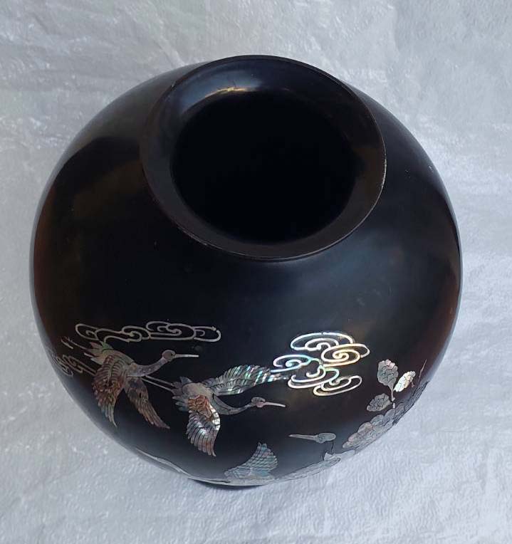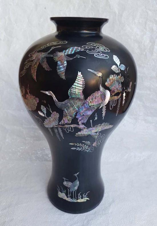 ***วัดใจ***แจกันใบใหญ่ ฝังมุกสไตล์เกาหลี รูปนกกระเรียน ขนาดสูง 43 ซม.