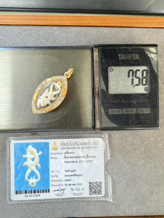 จิ้งจก หลวงพ่อหน่าย เนื้องาแกะ เลี่ยมทองคำแท้ 80-90% (เพชรแท้) *ยินดีส่งออกบัตรฯ