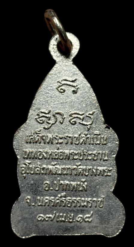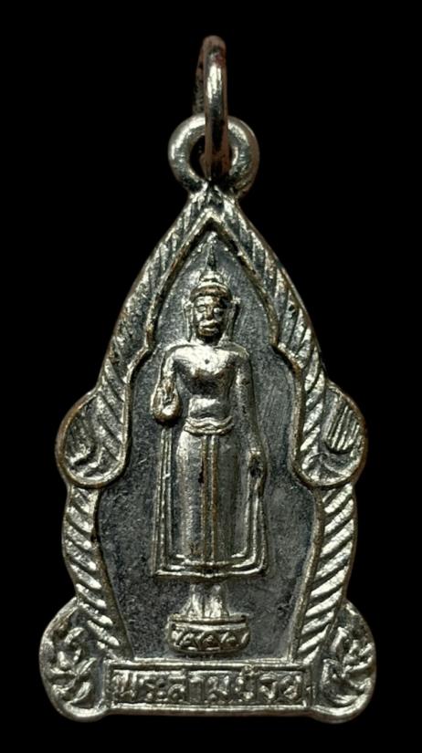 พระพุทธยืนประทานพร พระสามป้อย วัดบางพระ อ.ปากพนัง จ.นครศรีธรรมราช พ.ศ.2518 เนื้อทองแดงชุบนิเกิ้ล