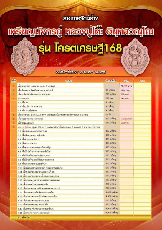 เหรียญมังกรคู่ 168 หลวงปู่โต๊ะ อินฺทสุวณฺโณ รุ่นโคตรเศรษฐี168 วัดถ้ำสิงห์โตทอง จ.ราชบุรี ปี66 ชุดกรรมการ ราคาจอง 800 ซีนเดิมๆลุ้นเลขสวยๆ ประกันแท้