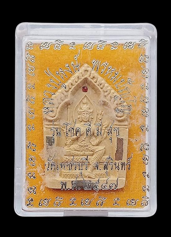 พระพรหม เนื้อผงว่านเหลืองมหาเศรษฐี หลวงปู่หงษ์ พรหมปัญโญ ฝังตะกรุด 3 กษัตริย์ รุ่น โชคดีมีสุข" ปี47 |