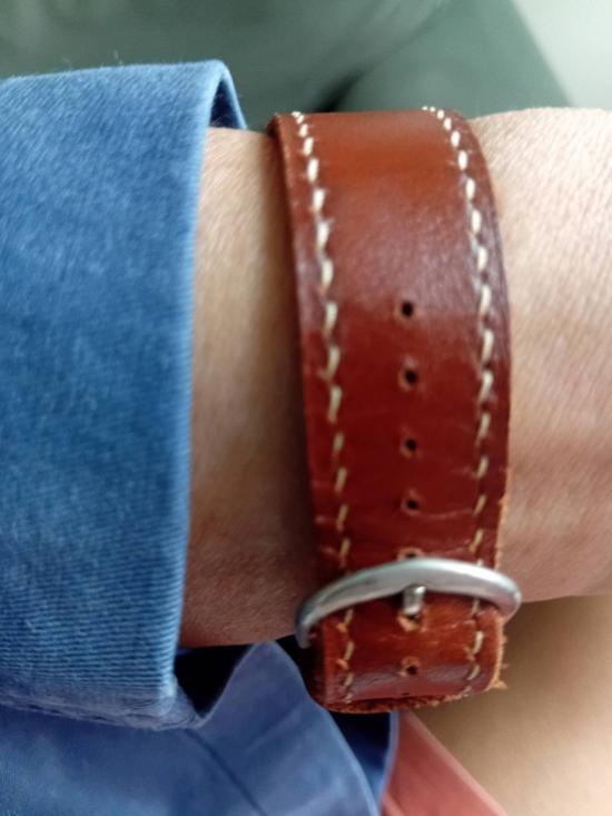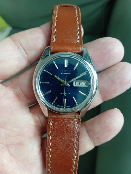 seiko auto เดินปกติ ขนาด 36 มม พร้อมสายหนังสีน้ำตาล หนัาปัดสีน้ำเงิน