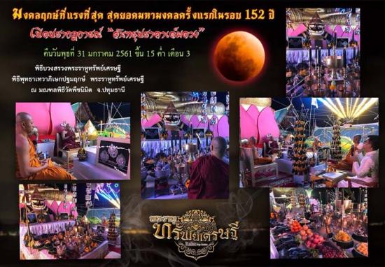 มหาฤกษ์ใหญ่ พิธีเข้มขลัง ด้วยพลังแห่งมหาบารมี คืนวันพุธที่ 31 มกราคม 2561 ขึ้น 15 ค่ำ เดือน 3 จันทรุปราคาเต็มดวง มงคลฤกษ์ที่แรงที่สุดในรอบ100 ปี