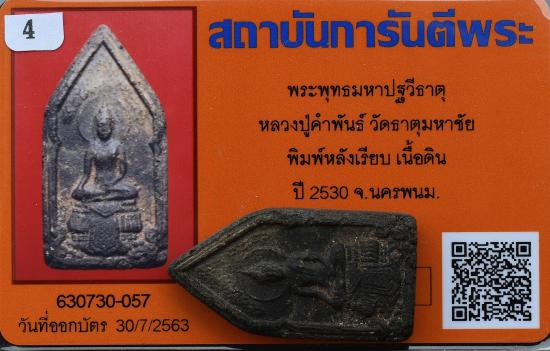 พระพุทธมหาปฐวีธาตุ พิมพ์หลังเรียบ เนื้อดิน ปี 2530 หลวงปู่คำพันธ์ วัดธาตุมหาชัย จ.นครพนม + บัตรรับรองพระแท้การันตีพระ