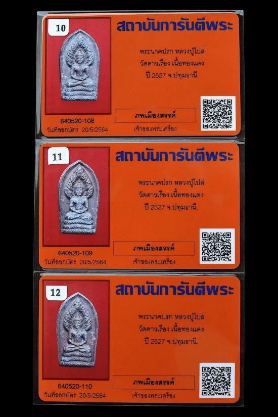 ชุด 3 องค์...พระนาคปรก เนื้อทองแดง ปี 2527 หลวงปู่ไปล่ วัดดาวเรือง จ.ปทุมธานี + บัตรพระแท้การันตีพระ