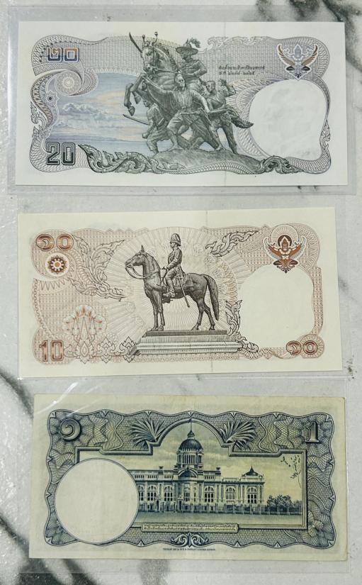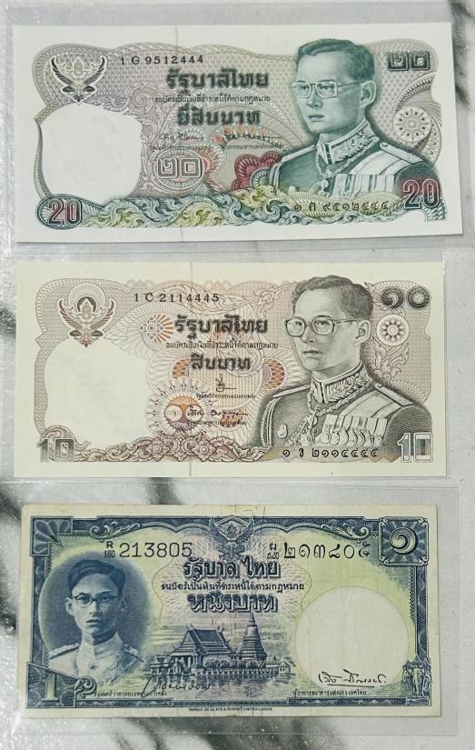 ชุด ธนบัตร 3 ใบ ร.9 ชนิด 20 บาท 10 บาท และ 1 บาท