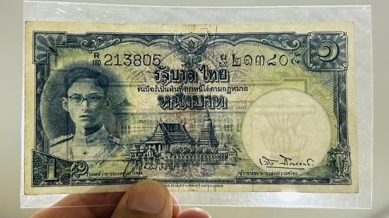 ธนบัตร 1 บาท ร.9 พระพักตร์หนุ่ม เลขดำ ลายน้ำพาน ผ่านใช้พอสวย