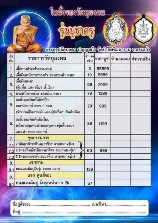 เคาะเดียวแดง หลวงปู่บุดดา รุ่น บูชาครู เนื้อ ทองทิพย์ซาตินลงยา แยกจากชุดกรรมการ 3องค์ |