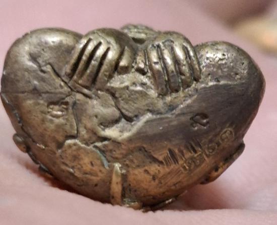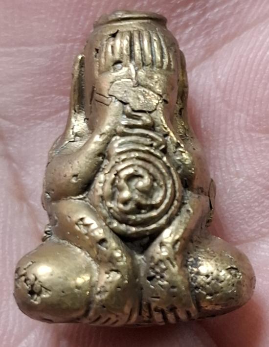 พระปิดตา โภคทรัพย์ หลวงปู่อั๊บ วัดท้องไทร ปี 53 เนื้อทองฝาบาตร เลข 123 พร้อมกล่อง